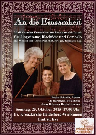 | | | | Sonntag, 27.09.2015 18:00 | “Der Mond ist aufgegangen” – Ein Abend mit Matthias Claudius (zum 200. Todesjahr des Dichters). Aktuelle Liedbetrachtung des populären Abendliedes, in 46 Sprachen übersetzt, auf Kirchentagen zum Kultlied geworden, Herbert Grönemeyers Finale bei seinen Konzerttourneen. Dr. Harald Pfeiffer holt mit seinen Liedgedanken das über 200 Jahre alte Abendlied in unsere Gegenwart herein, kürzlich erschienen in Form einer Broschüre (28 Seiten, mit Farbfotos von dem Tessiner Künstler Claudio Baccalà und einer Illustration von Ludwig Richter). Am Ausgang erhältlich. KMD Peter Schumann deutet das Abendlied musikalisch durch Orgel- improvisationen. Die gemeinsam gesungenen Liedstrophen werden von Orgel und Trompete begleitet. Der Eintritt ist frei, Spenden werden dankbar angenommen. Anschließend findet ein Sektumtrunk statt. | | | | Sonntag, 25.10.2015 17:00 Kreuzkirche | "An die Einsamkeit"