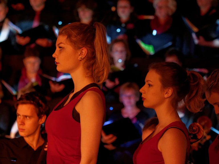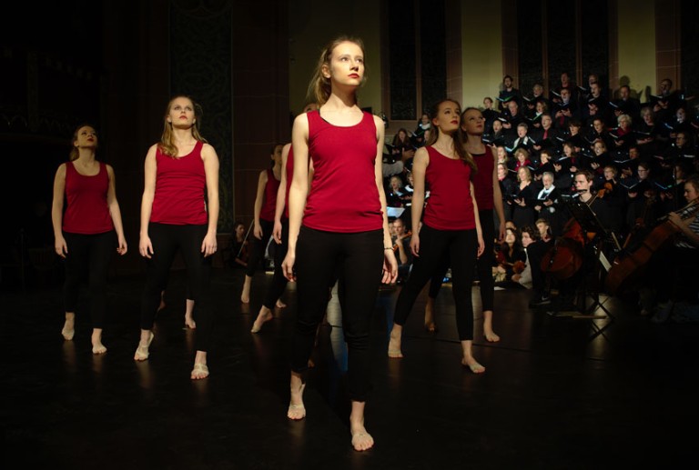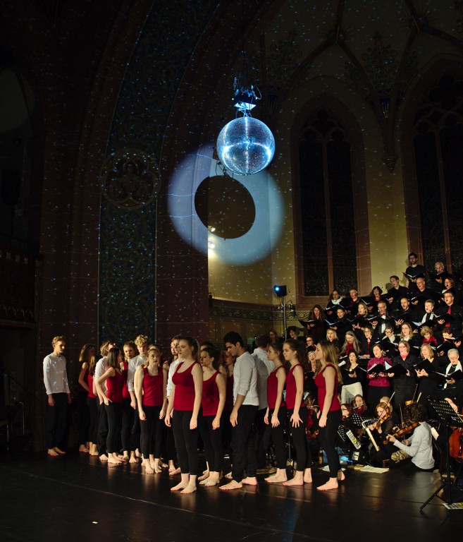 Am Wochenende des dritten Advents fanden schließlich die beiden Aufführungen in der zweimal ausverkauften Kreuzkirche statt. Am Ende hat alles sich gefügt. Das Zusammenwirken von Schülern, Erwachsenen und professionellen Musikern mündete in eine großartige Gesamtinszenierung, mit „alter“ und „moderner“ Musik, Solotänzen und –arien, einem zugleich tanzenden und singenden Chor sowie raumfüllenden Tuttiklängen in enger Abfolge, alles gestützt von einer von Antje Walter und der 10B ins Feinste ausgearbeiteten Choreographie. Alle gaben alles, jeder und jede wuchs noch einmal über sich hinaus und leistete so einen starken und wertvollen Beitrag zum Gelingen des Ganzen. So stand am Ende bei Mitwirkenden und Zuhörenden die Gewissheit, ein außergewöhnliches Adventskonzert in der Kreuzkirche gestaltet und erlebt zu haben.